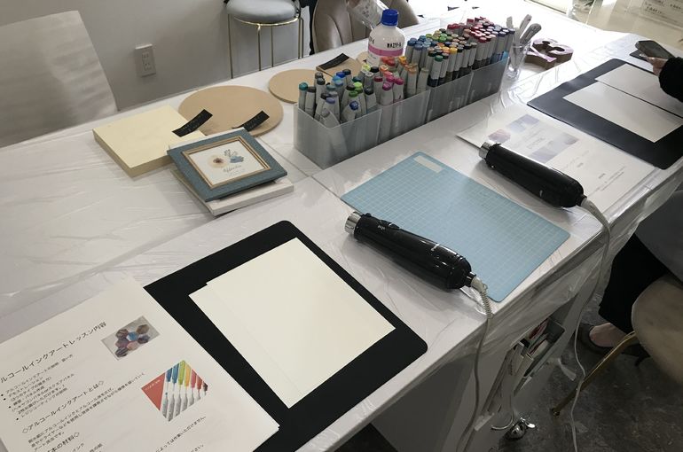 耐水ペーパーにインクやエタノールをたらしてドライヤーで乾かしながらアートしていきます♡